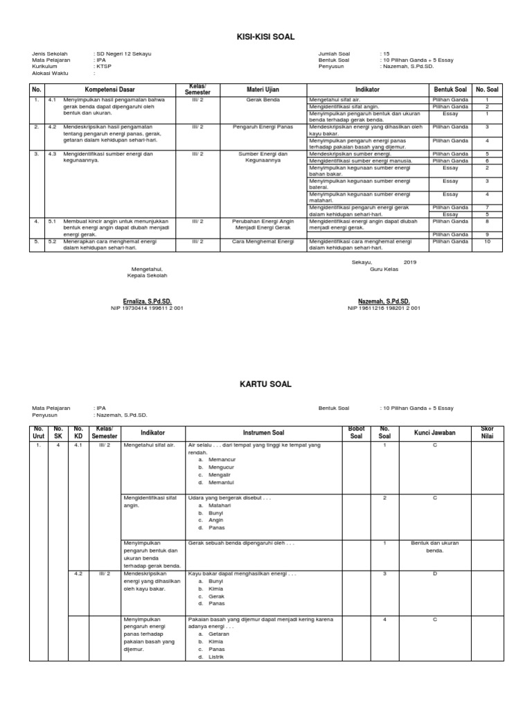 Kisi-kisi Soal Ipa Kelas 3 Sd Sk Kd