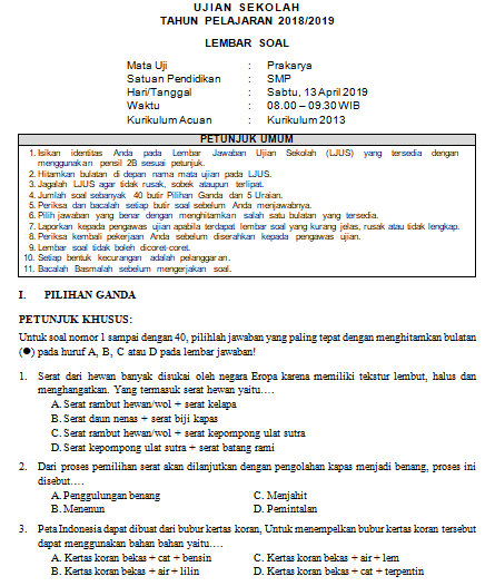 Soal Dan Kunci Jawaban Us Prakarya Smp Kurikulum 2013 Tahun Pelajaran 2018 2019 Didno76 Com