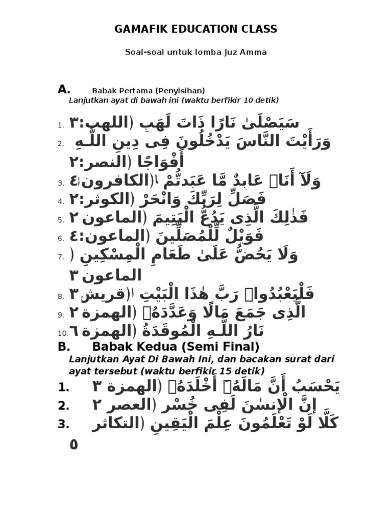 Kumpulan Soal Tahfidz Juz 30 Untuk Mtq Mhq Atau Cerdas Cermat. 5622 likes 16 talking about this. -Menentukan jumlah orang dalam kelompok halaqoh tahfidz.