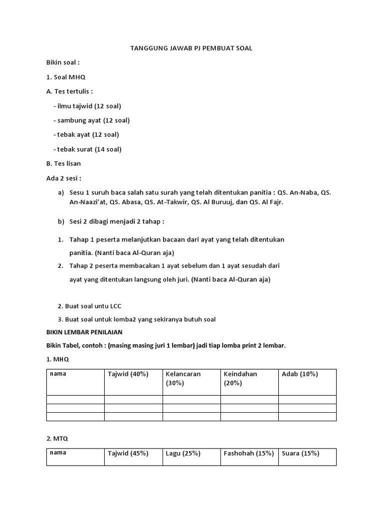 Download contoh soal kumpulan soal MHQ Hafalan Al Quran Demikianlah sekilas tentang contoh tata cara pelaksanaan lomba tahfizh lomba MHQ hafalan Al Quran. Yang harus dipelajari adalah seputar marfuatul asma isim-isim yang marfu ex. TAHUN PELAJARAN 2015 2016.
