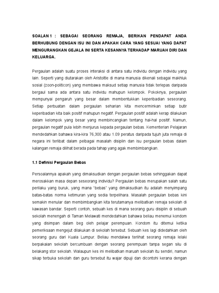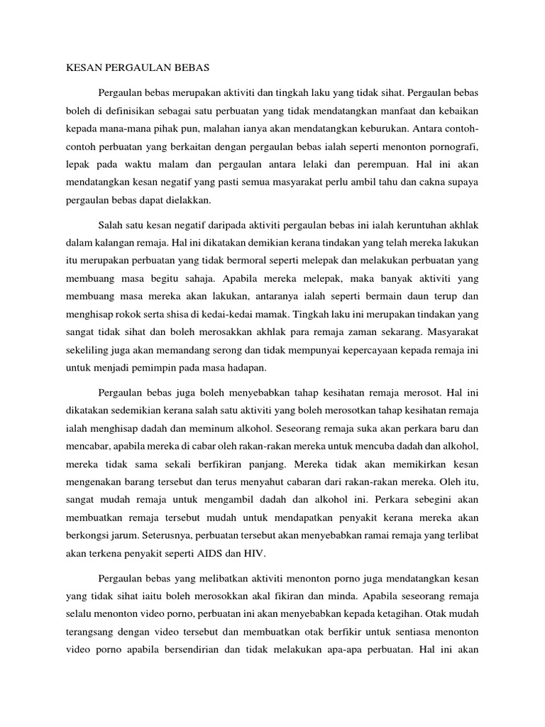 Assalamualaikum Warahmatullahi Wabarakatuh عأملن أيئت أعن أ ففف أعن أا أفنف أفنفغف أفنف. Pergaulan bebas merupakan salah satu bentuk perilaku menyimpang yang mana bebas yang dimaksud adalah melewati batas-batas norma ketimuran yang ada. Contoh soal tentang pergaulan bebas.