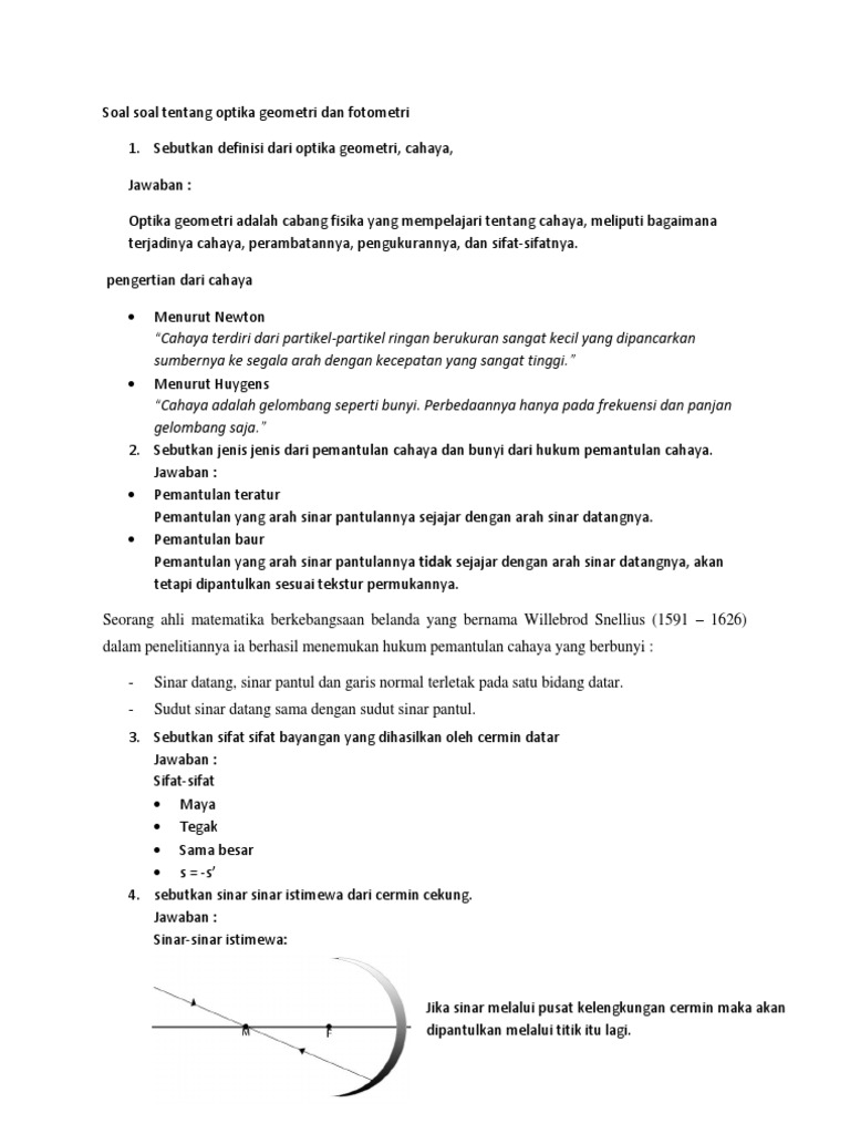 Soal Soal Tentang Optika Geometri Dan Fotometri