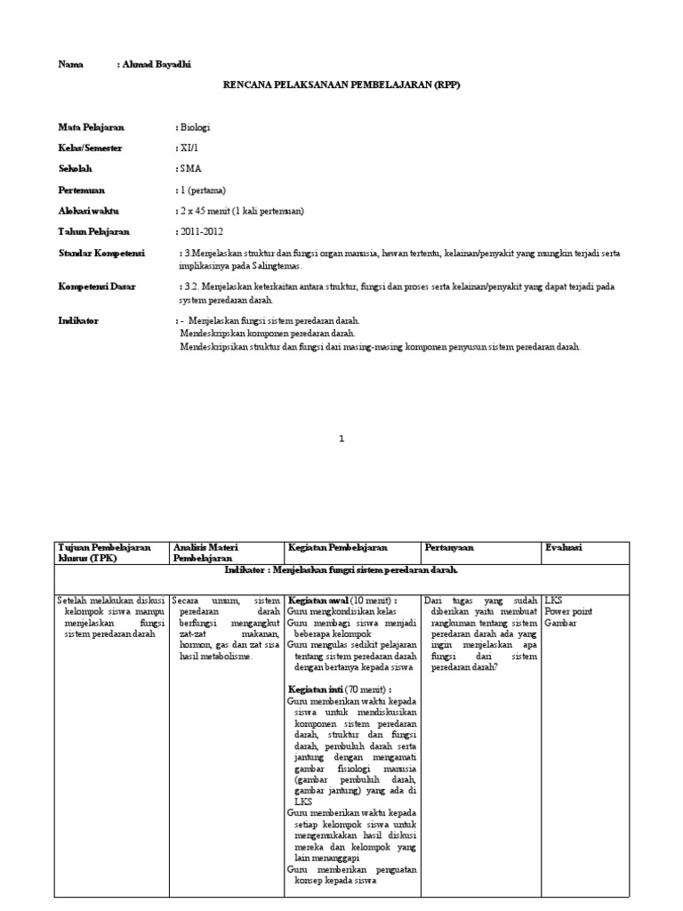 Kumpulan Rpp Kelas Xi Sistem Peredaran Darah