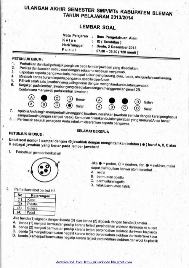 Soal Uas Ipa Kelas 9 Semester 1 2013 Sleman 1 Dikonversi