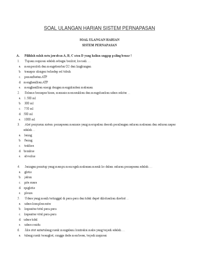 Soal Latihan Ulangan Ipa Sd Kelas 5 Tentang Pernapasan Google Docs Pdf