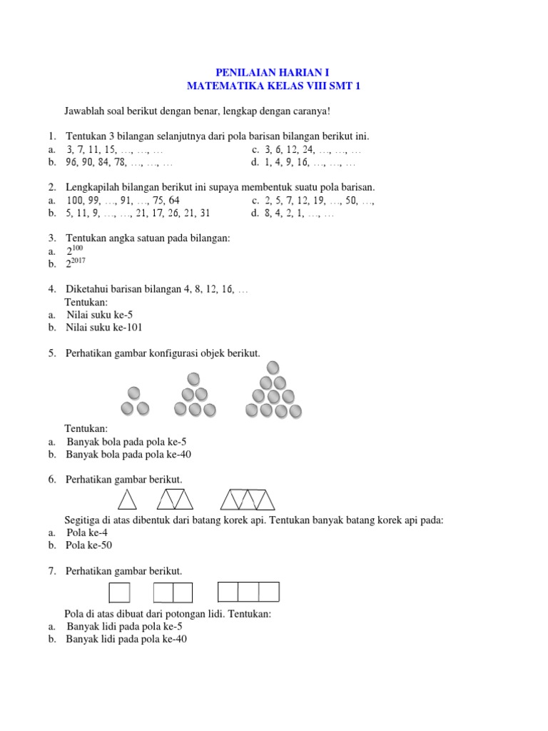 Contoh soal pola barisan bilangan kelas 8 smp. Contoh file download contoh soal uts semester 1 tahun 2015 untuk sd semua kelas berikut ini adalah kumpulan dari. Web makalah soal matematika kelas 8 smp dan mts pg atau essay tahun ajaran 2020 2021 semester 1 2 lengkap pelajaran matematika.