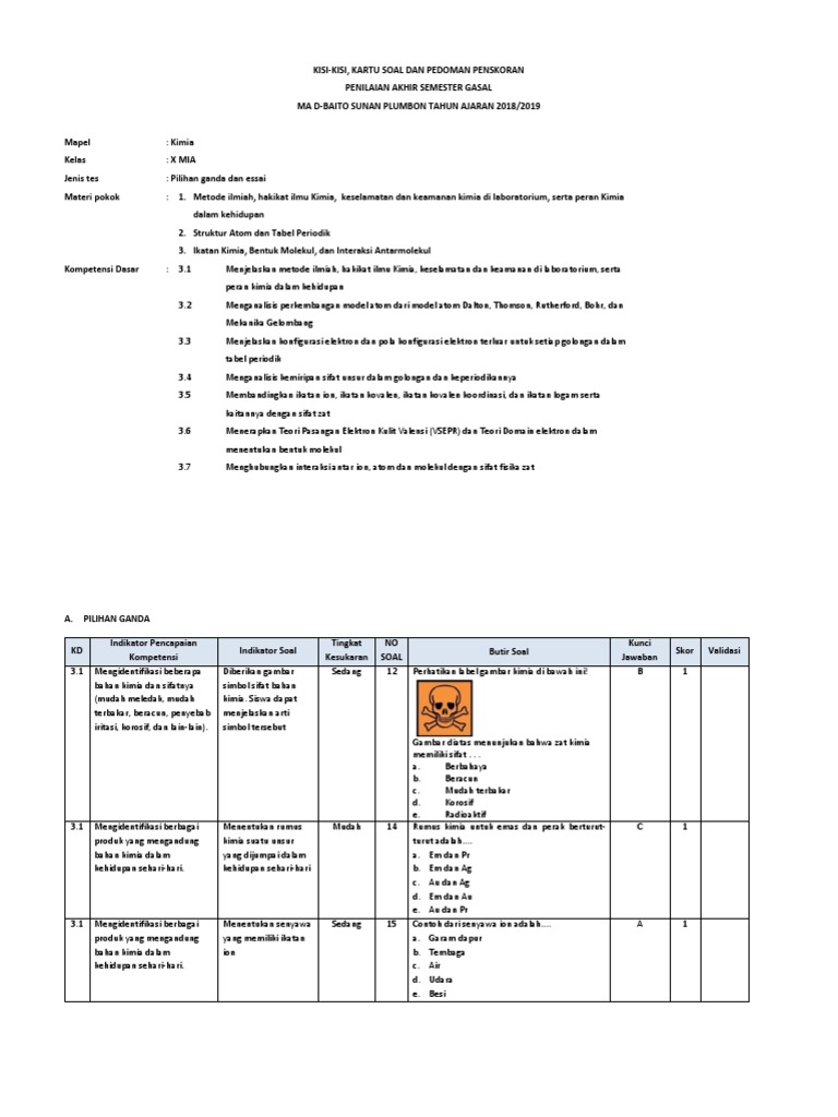 30 Contoh Soal Kimia Kelas 10 Semester 1 Kurikulum 2013 Hakikat Dan Peran Kimia Serta Metode Ilmiah Berita Bawean