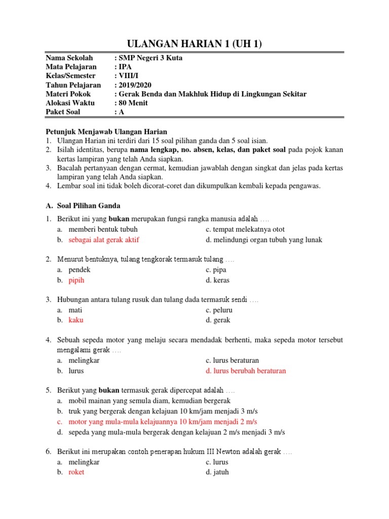 Soal pilihan ganda ipa gerak. Keindahan Matematika Yang Menakjubkan Https. Soal IPA materi Sistem Gerak Manusia ini berbentuk Pilihan Ganda dan Uraian dengan dilengkapi kunci jawabannya. Berikut dibagikan soal IPA Sistem Gerak Manusia SMP Kurikulum 2013 dan kunci jawaban.